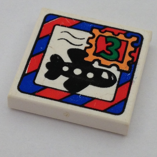 - Nom : Tile 2 x 2 with Fabuland Mail Envelope, Airplane and '3' Stamp Print