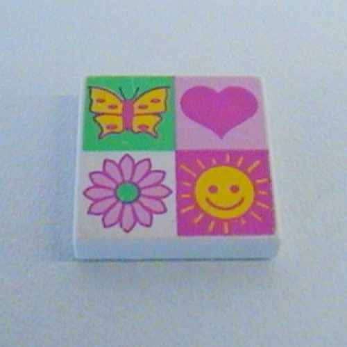 - Nom : Tile 2 x 2 with 4 section Heart, Sun, Flower, Butterfly Print