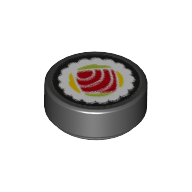 - Nom : Tile Round 1 x 1 with Striped Pink Tuna Rectangle Sushi Print