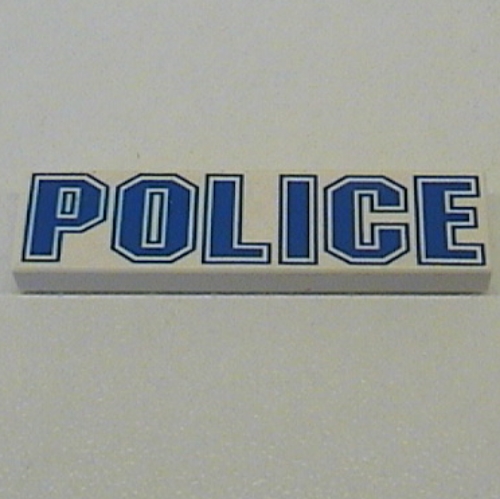 - Nom : Tile 1 x 4 with 'POLICE' Blue Outline Print [7034 / 7035]