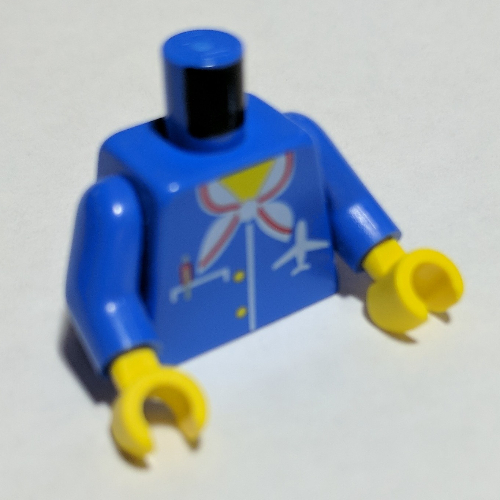 - Nom : Torso Airplane Crew Female, Pocket, Pen, Scarf and Logo Print / Blue Arms / Yellow Hands