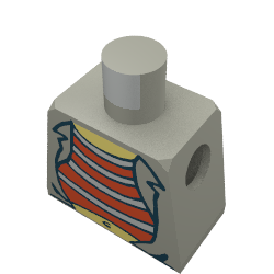 - Nom : Torso Adventurers Desert Red and Silver Striped Undershirt and Navel Print / Dark Gray Arms / Yellow Hands
