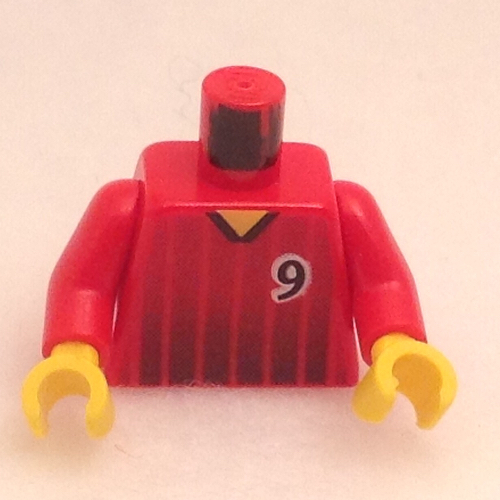 - Nom : Torso Soccer Vertical Striped Red/Blue and No. 9 Back Print / Red Arms / Yellow Hands