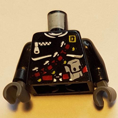 - Nom : Torso Dino Vest with Dark Red Harness, 4 Bullets Print / Black Arms / Dark Bluish Gray Hands