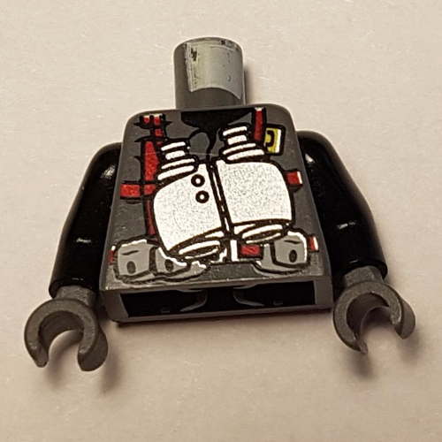 - Nom : Torso Dino Vest with Red Harness and Silver Binoculars Print / Black Arms / Dark Bluish Gray Hands