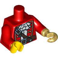 - Nom : Torso Pirate Captain with White Ruffled Shirt, Brown Belt and Shoulder Strap Print / Red Arms / Yellow Hand Right / Pearl Gold Hook Left