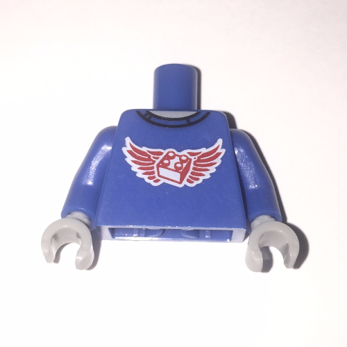 - Nom : Torso Shirt with Red Wings and 2 x 2 Brick Print / Blue Arms / Light Bluish Gray Hands