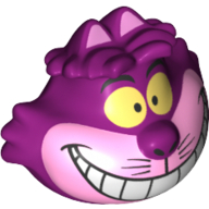 - Nom : Minifig Head with 2 Ears on Top, Yellow Eyes, and Cheshire Cat Grin in Bright Light Pink Muzzle print