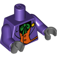 - Nom : Torso Batman Suit with Orange Vest, Green Tie, Yellow Flower Print / Dark Purple Arms / Dark Bluish Gray Hands