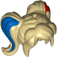 - Nom : Minifig Hair - Front Bangs Short on Top of Longer Sides - 2 Back Ponytails with Blue Streak on Right and Red Streak on Left