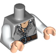 - Nom : Torso PotC Open Vest with Dark Bluish Gray Embroidery and Dark Brown Belt Print / White Arms / Light Flesh Hands
