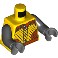 - Nom : Torso Ninjago Wrap with Shoulder Armour and Belts, Gold Lion on Back Print / Black Arms / Black Hands