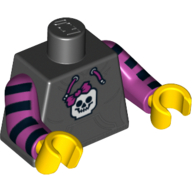 - Nom : Torso Hooded Sweatshirt with Pocket, Drawstring and Minifig Skull Print / Magenta Arms with Black Stripes / Yellow Hands