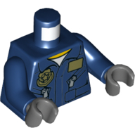 - Nom : Torso Flight Suit Jacket with Name Tag and Police Badge, Zippered Pockets Print / Dark Blue Arms / Dark Bluish Gray Hands