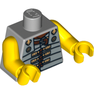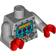 - Nom : Torso - Robot with Silver Rivets, Yellow Gauges, Red Knobs and Yellow Screen Print / Light Bluish Gray Arms / Red Hands