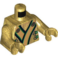 - Nom : Torso Ninjago Robe with Black, Green and Gold Sash and Lion Head on Back Print / Pearl Gold Arms / Pearl Gold Hands