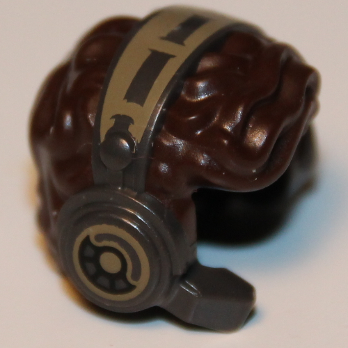 - Nom : Minifig Head Beard Vertical Lines with Messy Hair, Moustache Brown Print [Solid Stud]
