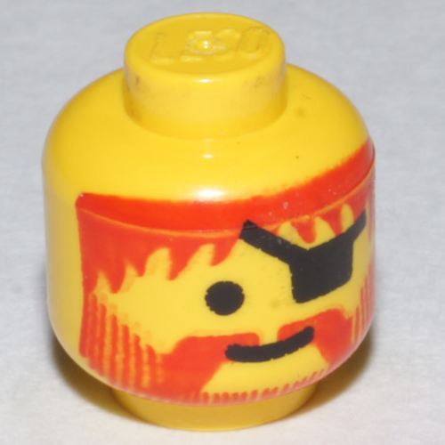 - Nom : Minifig Head Beard Vertical Lines with Messy Hair, Moustache Red, Eyepatch Print [Solid Stud]
