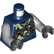 - Nom : Torso with Dual Side Print - Tattered Ninjago Robe with Yellowish Green Collar and Dark Blue Undershirt in Front - Dark Blue Arms - Yellowish Green Hands