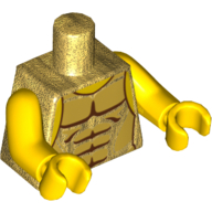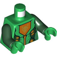 - Nom : Torso Nexo Knights Armor with Orange and Gold Circuitry and Orange Emblem with Gold Wolf Head Pattern / Dark Green Arms / Green Hands