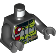 - Nom : Minifig Torso - Jacket with Two Pockets over Bright Green T-Shirt with 8-Bit Shooter Print - Black Arms - Yellow Hands