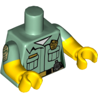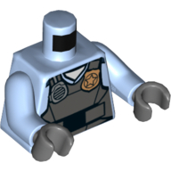 - Nom : Minifig Torso Police Shirt with Dark Bluish Gray Vest, Gold Badge, Radio and 'POLICE' print on Back / Bright Light Blue Arms / Dark Bluish Gray Hands