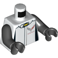 - Nom : Minifig Torso Race Suit Yellow Chevrolet emblem on Front and 'CORVETTE RACING' on Back print / Black Arms / Black Hands