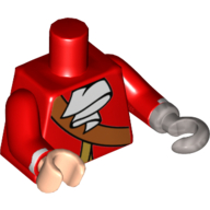 - Nom : Torso Pirate Coat with Gold Trim, Crossbelt, White Ascot print / Red Arms with White Stripe at Wrist / Light Flesh Right Hand / Flat Silver Left Hook