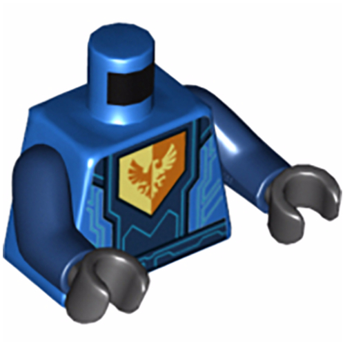 - Nom : Torso with Nexo Knight Armor - Blue and White Falcon Emblem Print - Blue Arms - Light Bluish Gray Hands - Clay
