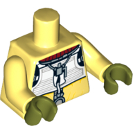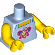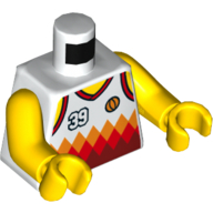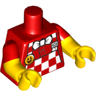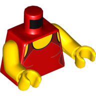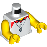 - Nom : Torso - White Polka Dot Shirt with 3 Red Buttons - Blue Suspenders and Red Polka Dot Bow Tie Print - Yellow Right Arm / Red Left Arm - Yellow Hands