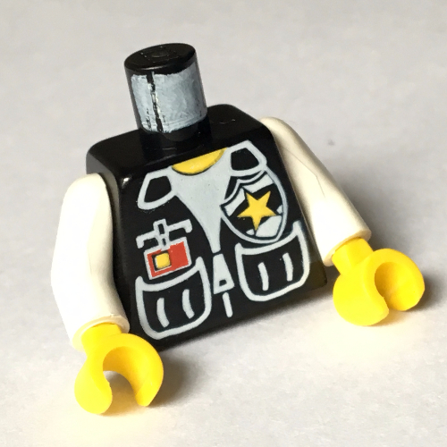 - Nom : Torso Police Vest, White Shirt, ID, Yellow Star Badge Print / White Arms / Yellow Hands