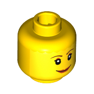 - Nom : Minifig Head Female with Brown Thin Eyebrows, White Pupils and Short Eyelashes, Wide Black Smile with Red Lips Print [Blocked Open Stud]