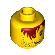 - Nom : Minifig Head Male Red-Brown Hair over Eye, One Eyebrow, Stubble, White Pupils Print [Blocked Open Stud]