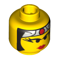 - Nom : Minifig Head Female with Red Lips, Eyelashes, Gray Headband with Red Circle Print [Blocked Open Stud]