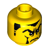 - Nom : Minifig Head Male Sideburns with White Stripes, Frown and Facial Hair, White Pupils Print (Vladek) [Blocked Open Stud]