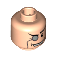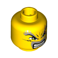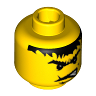 - Nom : Minifig Head Dual Sided - Green Eyes with Frown and Scar / Open Mouth Print [Takeshi] [Blocked Open Stud]