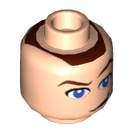 - Nom : Minifig Head Male Eyes Blue with Raised Eyebrow and Smirk Print [Sokka 3828] [Blocked Open Stud]