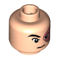 - Nom : Minifig Head with Dark Red Lips, Smirk/Eyemask 2-Sided Print [Blocked Open Stud]