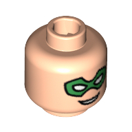 - Nom : Minifig Head with Mask Br.Green with Eyeholes and Smile Print [Blocked Open Stud]