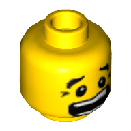 - Nom : Minifig Head Brown Eyebrows, Thin Grin with Teeth, Black Eyes with White Pupils Print [Blocked Open Stud]