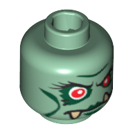 - Nom : Minifig Head Alien with Red Eyes, Dark Green Lips and Lower Fangs Print [Blocked Open Stud]