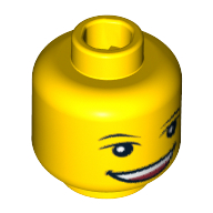 - Nom : Minifig Head Male Black Eyebrows, Vertical Cheek Lines, Chin Dimple and Wide Grin Print [Blocked Open Stud]
