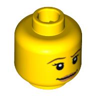 - Nom : Minifig Head Dual Sided Female with Eyelashes, Eye Shadow, Dark Red Lips, Smile / Frown Print [Blocked Open Stud]