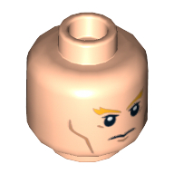 - Nom : Minifig Head Dual Sided Bushy Orange Eyebrows, Cheek Lines, Frown / Angry Print [76000] [Blocked Open Stud]