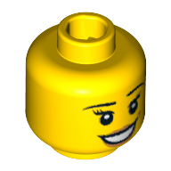 - Nom : Minifig Head Female with Peach Lips and Dimple, Open Mouth Smile, Black Thin Eyebrows, Eyelashes and White Pupils Print [Blocked Open Stud]