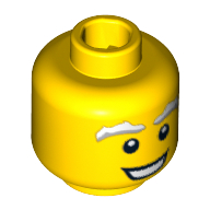 - Nom : Minifig Head Male White and Gray Bushy Eyebrows, Open Mouth Smile Print [Blocked Open Stud]