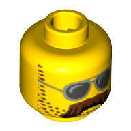 - Nom : Minifig Head Moustache Brown Bushy, Stubble and Silver Sunglasses Print [Blocked Open Stud]