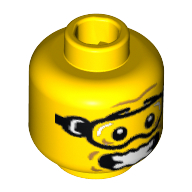 - Nom : Minifig Head Glasses with Skydiver Goggles, Open Mouth and Scared Print [Blocked Open Stud]