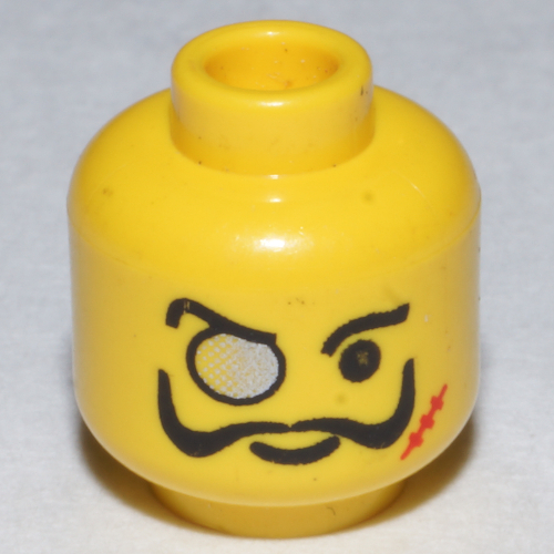 - Nom : Minifig Head Glasses with Monocle, Scar, and Goatee Print [Blocked Open Stud]