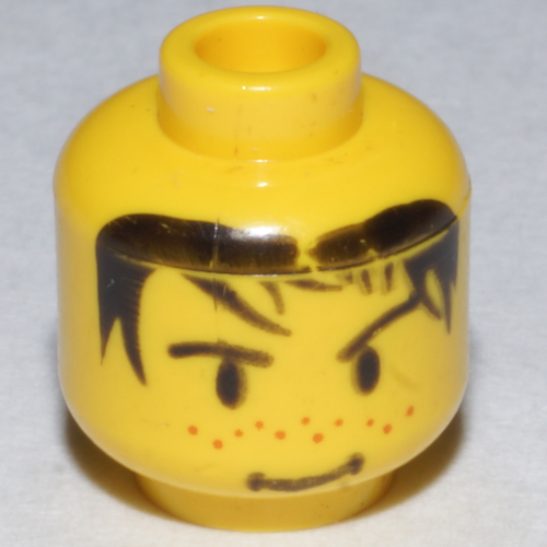 - Nom : Minifig Head Male Spiky Black Hair, Nose Freckles and Smirk Print [Blocked Open Stud]